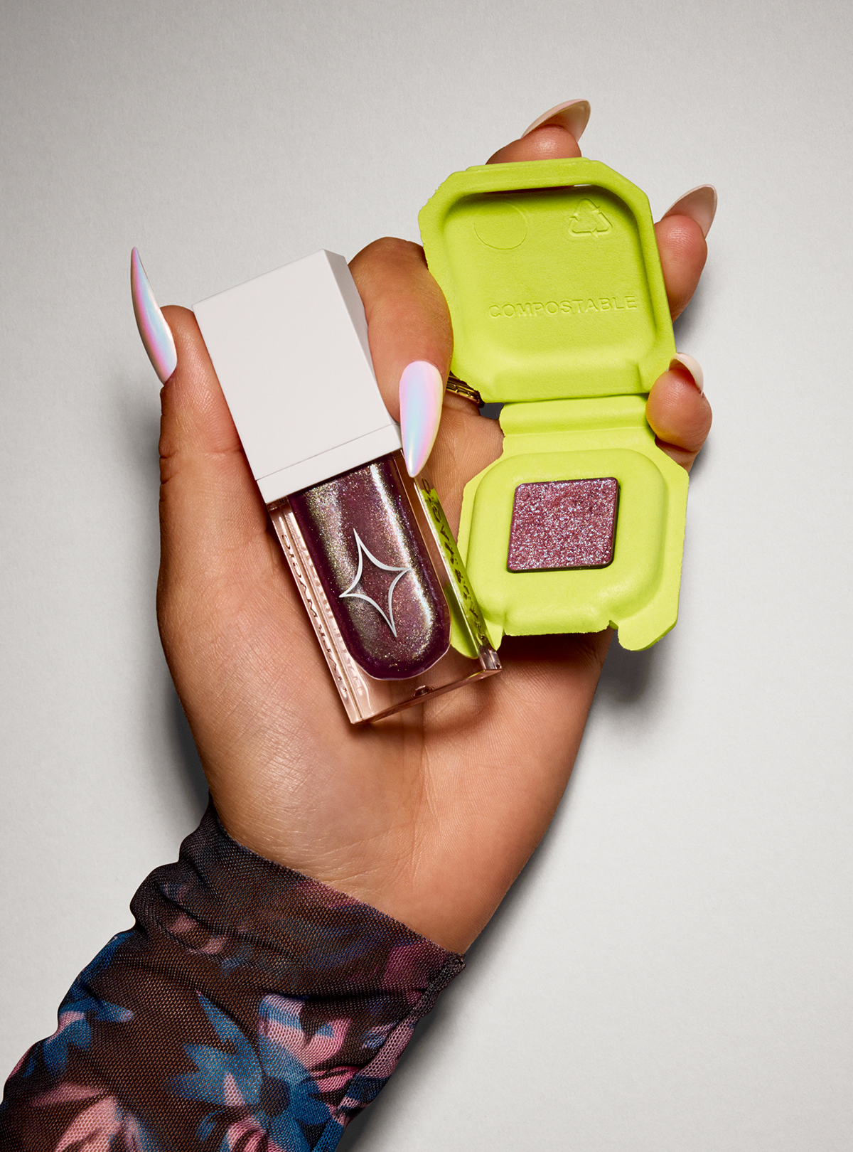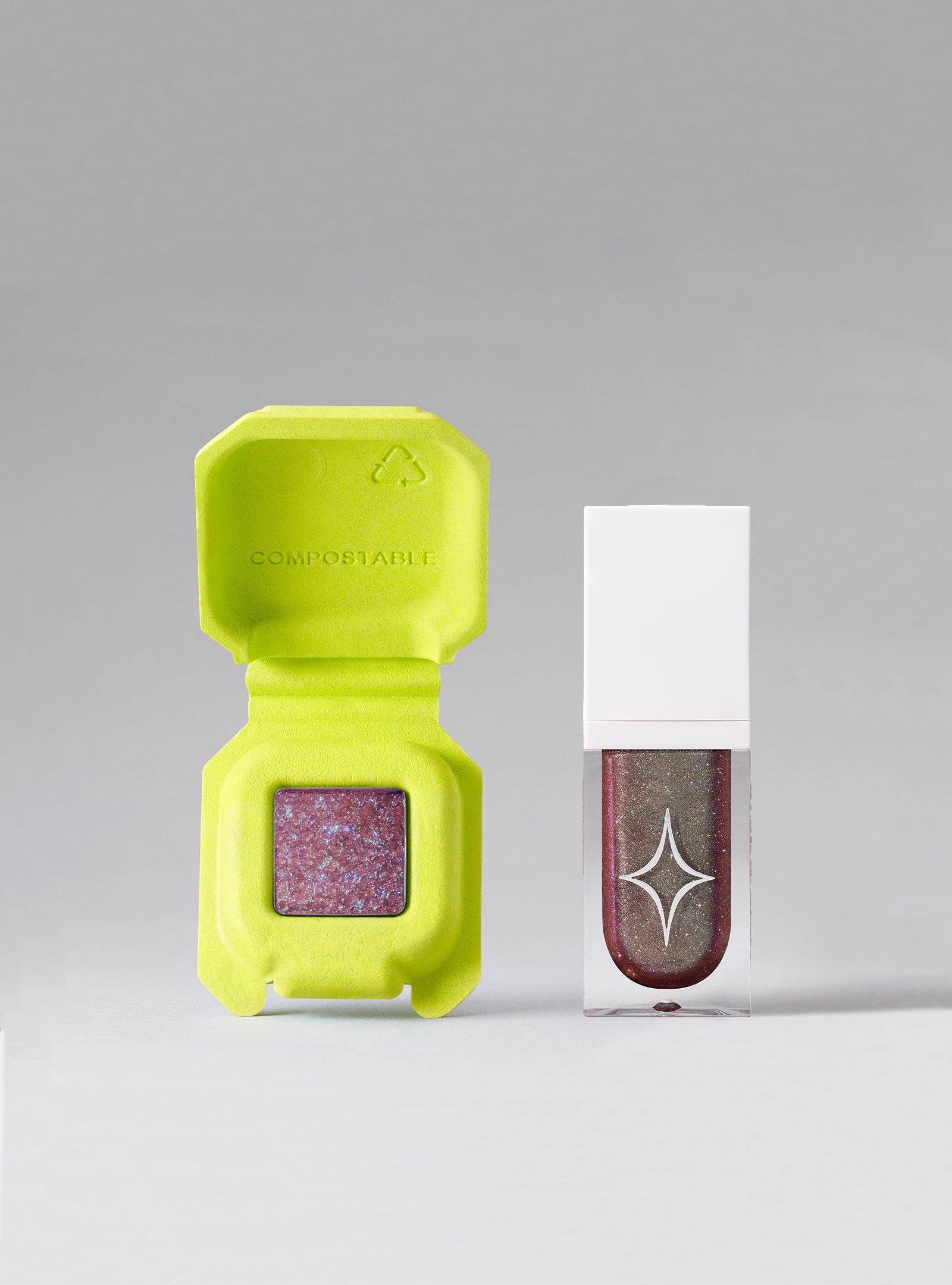 Our fan favorite, high-pigment Blushing Lizard EYE SHADOW SINGLE has met its match—literally. It’s the latest shade of MAGIC DRIP GLITTER LIP GLOSS, a mauve taupe with mint reflects that hugs your lips in insane levels of sparkle without any stickiness. Wear them together for a multidimensional, mega-sparkle look that still feels monochrome and harmonious, or snag the shadow and lip gloss shade that’s about to be on everyone’s lips.