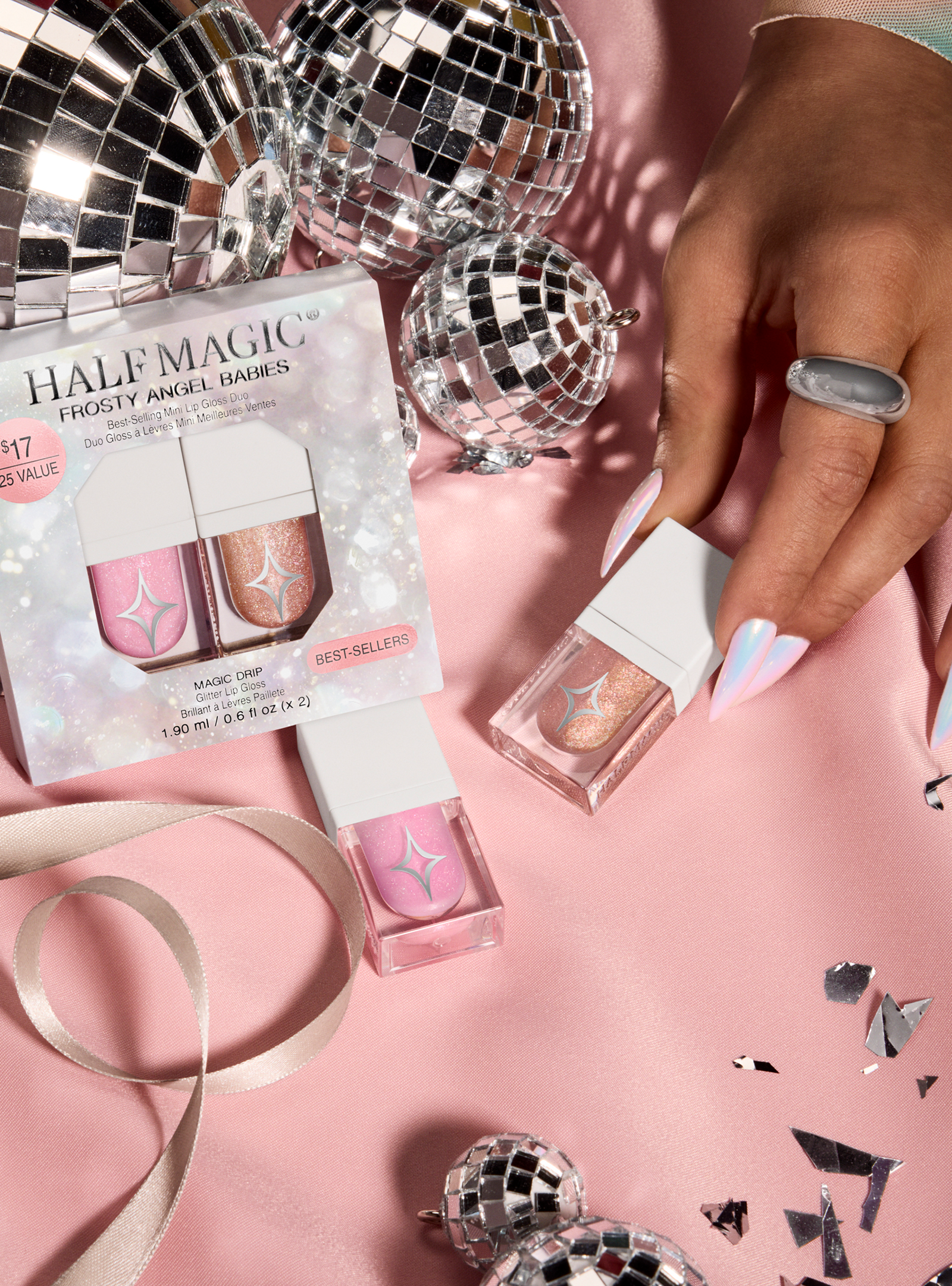 Who said minis can’t pack a punch? Small enough for your tiniest purse, but big enough for a full-on sparkle moment. This duo includes two best-selling shades of Magic Drip Glitter Lip Gloss – Y2K Cherub, a soft, shimmering baby pink, and Frosty B*tch, an icy peach with multicolored reflects. Coat your lips in this plush, high-cushion formula for luscious lip dimension that never ever feels sticky or tacky.