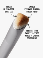 Use tapered tip of the brush to softly blend out color in the crease of the eye or create a smokey shadow wing. Use flat edge of pyramidal brush head to "stamp" a shadow wing on the outer corner of the eye.