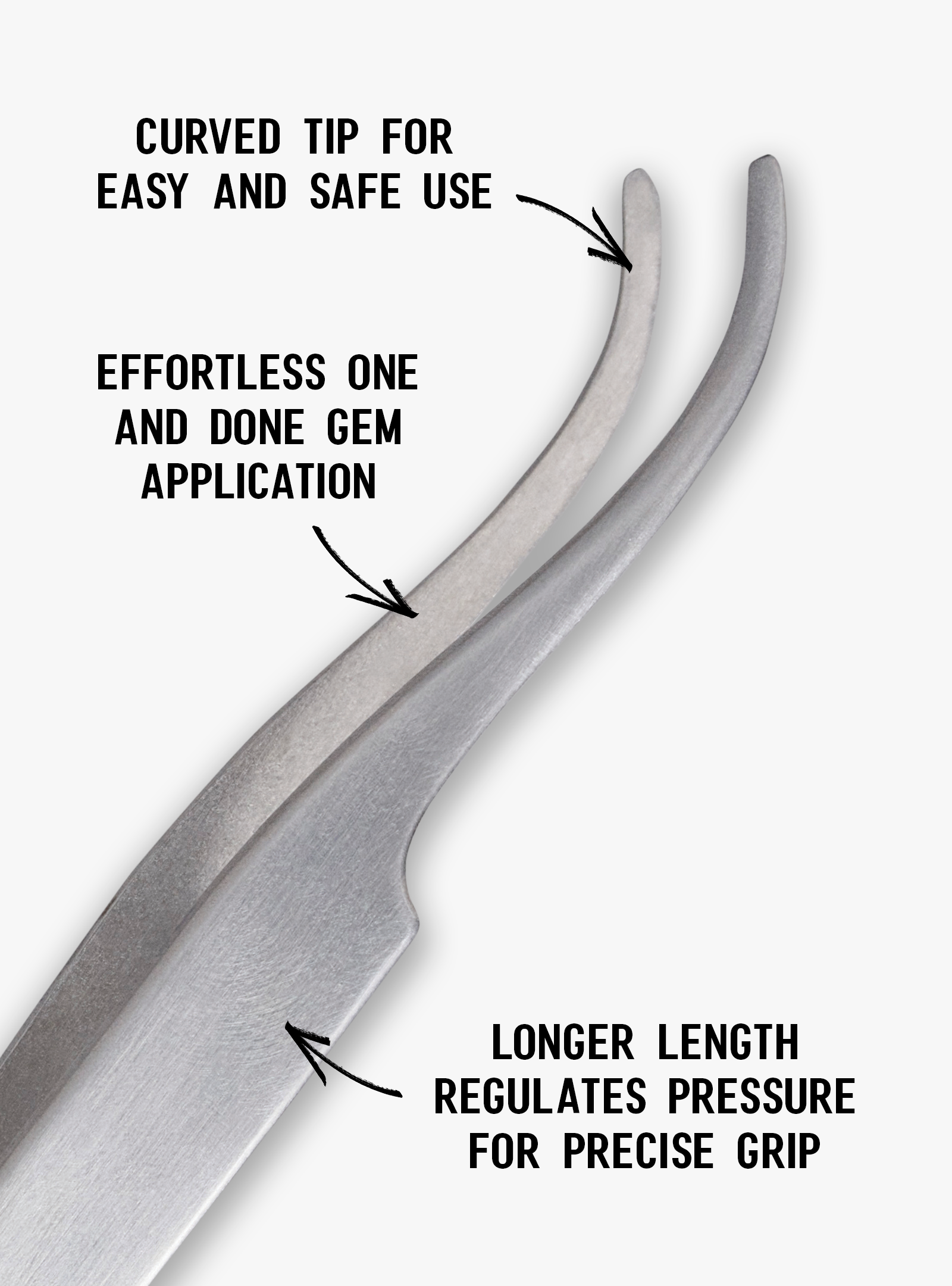 Tweezers specifically designed to grip our FACE GEMS, FACE PEARLS, and FACE STUDS for easy and safe application.