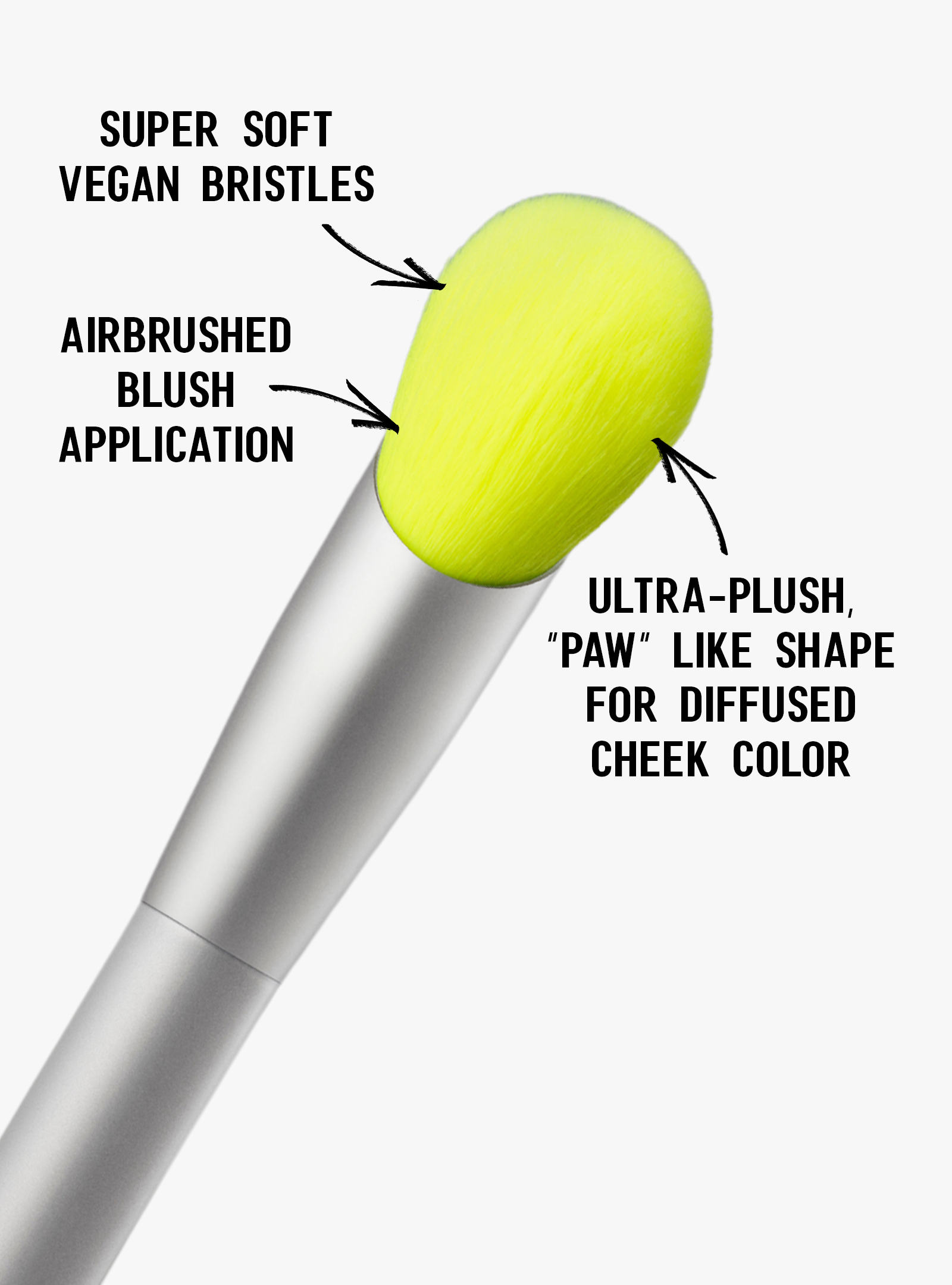 An ultra-plush blush brush designed to mimic the shape of a "baby paw" for the smoothest, most airbrushed color application.