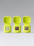 Our glossy metallic eyeshadows are buttery, foiled, one-swipe color magic. We’ve paired best seller WET PEBBLE, a deep taupe, LIL DERANGED, a striking moss green, with ELVIN THINGS, a crystal shimmer with mint and peach reflects.